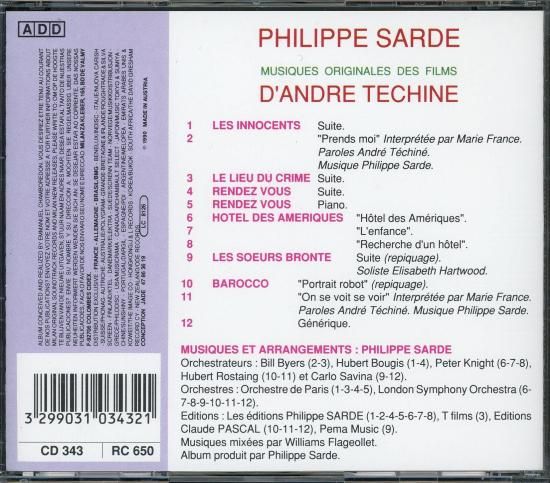 Musiques originales des films d¡ÇAndré Téchiné / Philippe Sarde¡¡CD¡¡¥¢¥ó¥É¥ì¡¦¥Æ¥·¥Í¡¡¥Õ¥£¥ê¥Ã¥×¡¦¥µ¥ë¥É