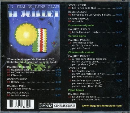 - Quatorze Juillet¡ÖÇÃΤº×¡× (1933) / René Clair ¥ë¥Í¡¦¥¯¥ì¡¼¥ë´ÆÆÄ (m. Maurice Jaubert ²»³Ú¡¿¥â¡¼¥ê¥¹¡¦¥¸¥ç¥Ù¡¼¥ë)